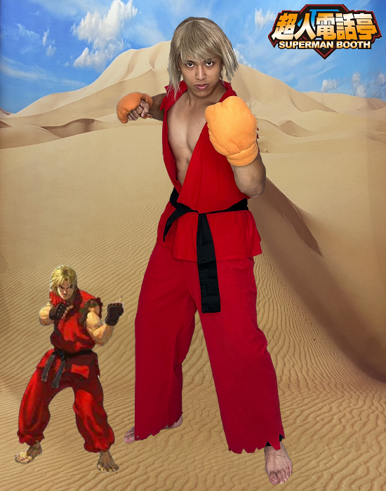 街頭霸王肯變裝cosplay服裝出租(租借) 【Street Fighters】 角色名稱 : 街頭霸王 – 肯 商品代號 : AB3023 商品尺寸 : 均碼 (M ~ 偏瘦XL皆可穿) 商品包含 : 1 – 上衣 2 – 褲子 3 – 腰帶 4 – 手套X2 【額外加租配件】 1 – 假髮 代號 AW1019