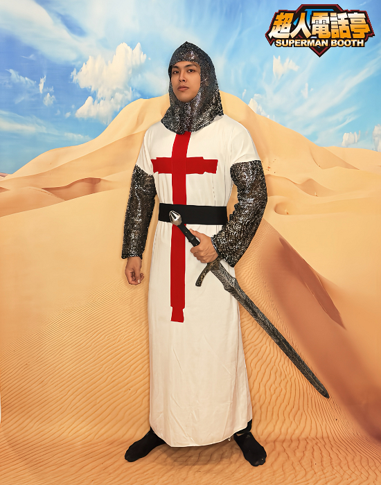 中世紀十字軍cosplay變裝服裝出租(租借) 角色名稱 : 十字軍 商品代號 : AD3010 商品尺寸 : L 商品包含 : 1 – 頭套 2 – 內里衣 3 – 腰帶 4 – 連身袍 【額外加租配件】 1 – 武器請參考西洋武器系列目錄