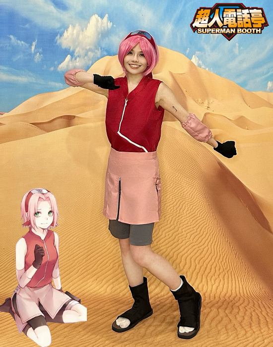 火影忍者春野櫻變裝cosplay服裝出租(租借) 【Naruto】 角色名稱 : 火影忍者 – 春野櫻 商品代號 : AE0109 商品尺寸 : M 碼 商品包含 : 1 – 上衣 2 – 短褲 3 – 手套X2 4 – 袖套X2 5 – 圍裙 【額外加租配件】 1 – 假髮含頭帶 代號 AW5094 2 – 忍者鞋請參考腳配件系列目錄